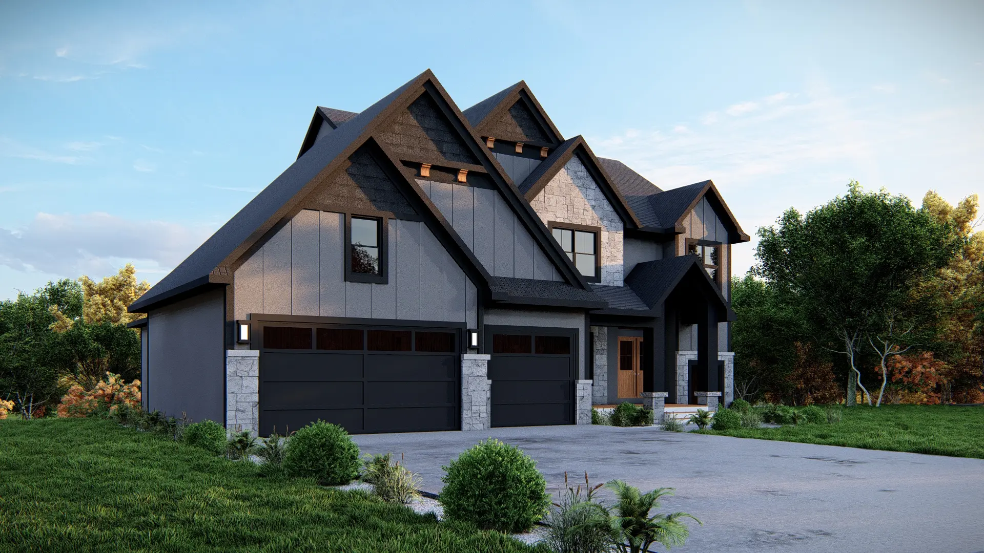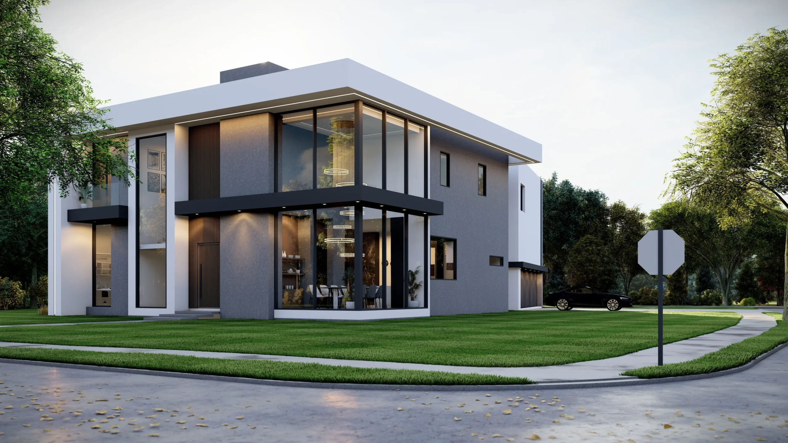 Enhance your home's curb appeal with our custom 3D exterior designs. We create stunning home exteriors, including inviting entrances and serene backyards, tailored to your lifestyle and providing a relaxing space.